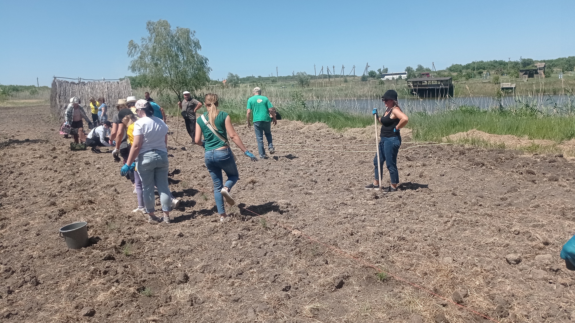 Та насправді 25 травня було створено два лавандових поля. Одне біля ставка, де невпинно кумкали жабки та кректали качки… Їм не заважала наша робота, а ми не порушили спокій тихої води, оточеної заростями осоки…